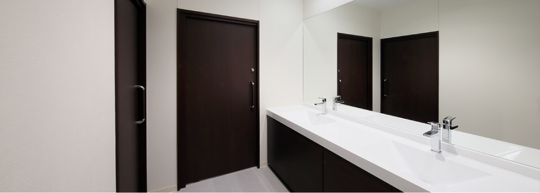 1F、2F、それぞれに男女別のトイレを完備。女性でも安心して利用できます。 2F はトイレとは別に洗面所もあります。