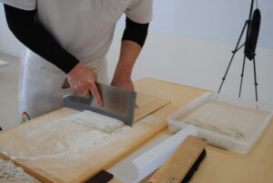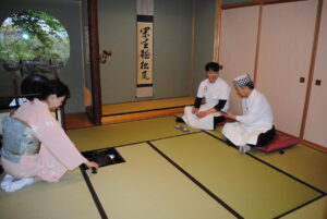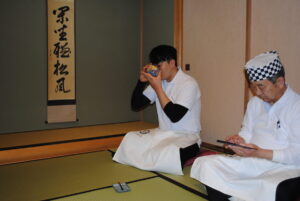 授業では熱心にそば打ちに取り組み、その後、日本の茶室にて正式な入学式を執り行いました。